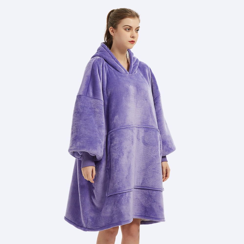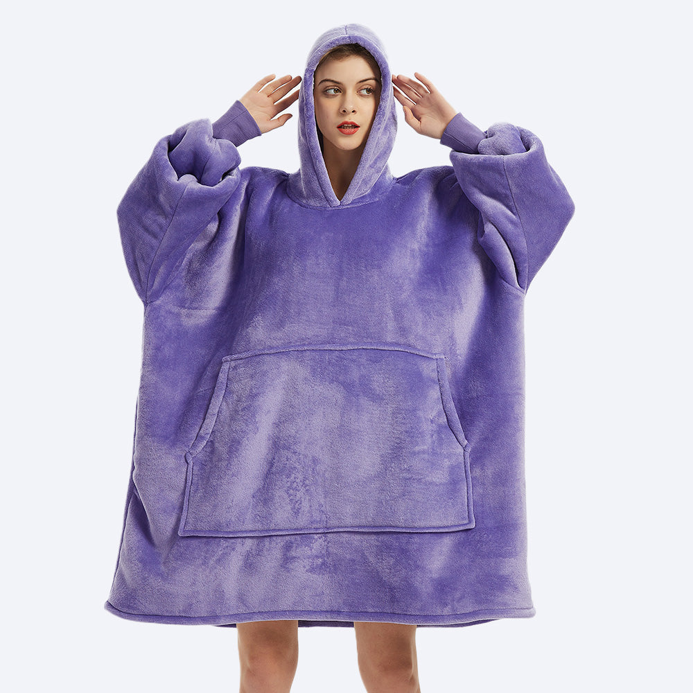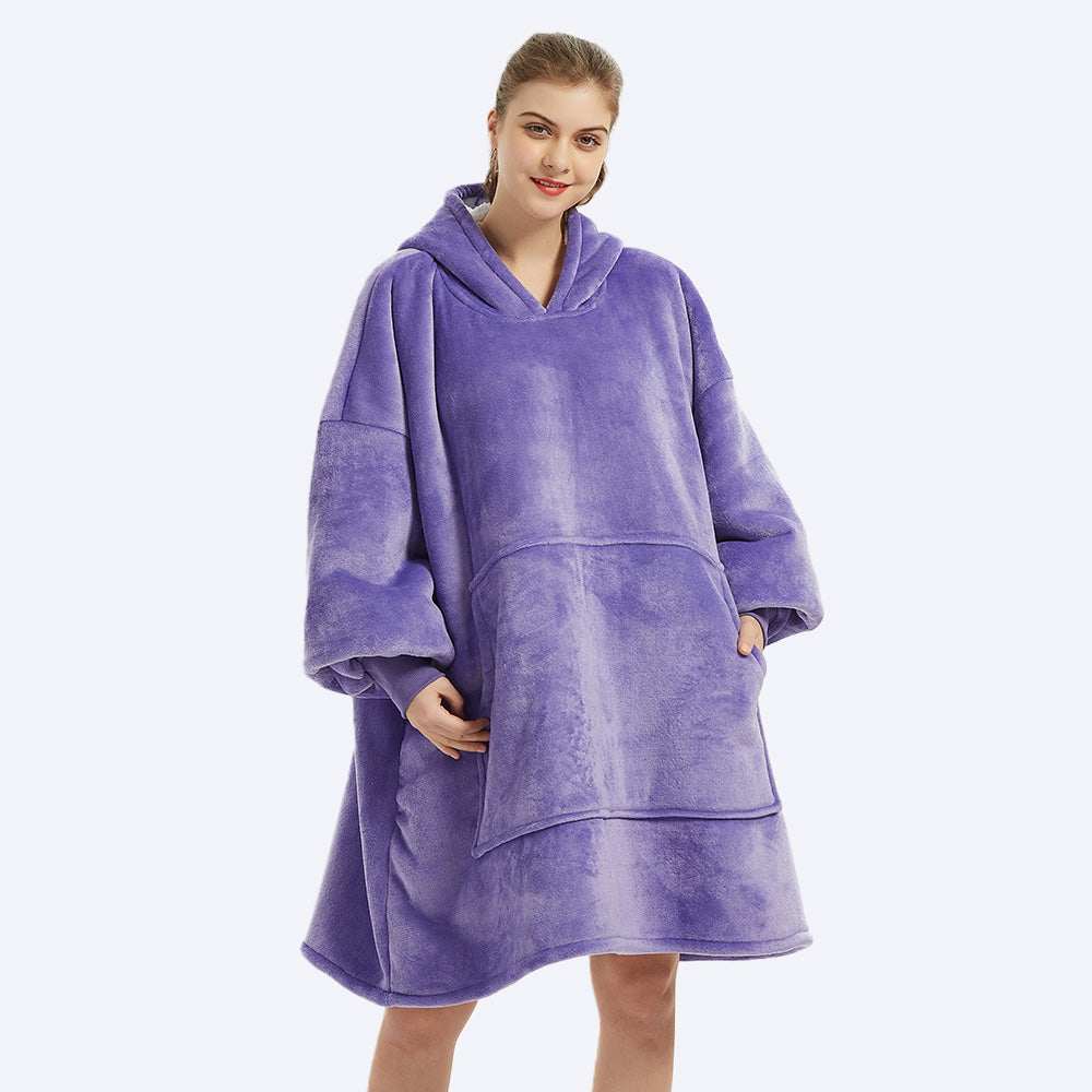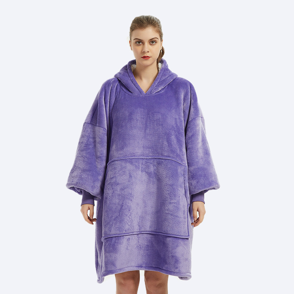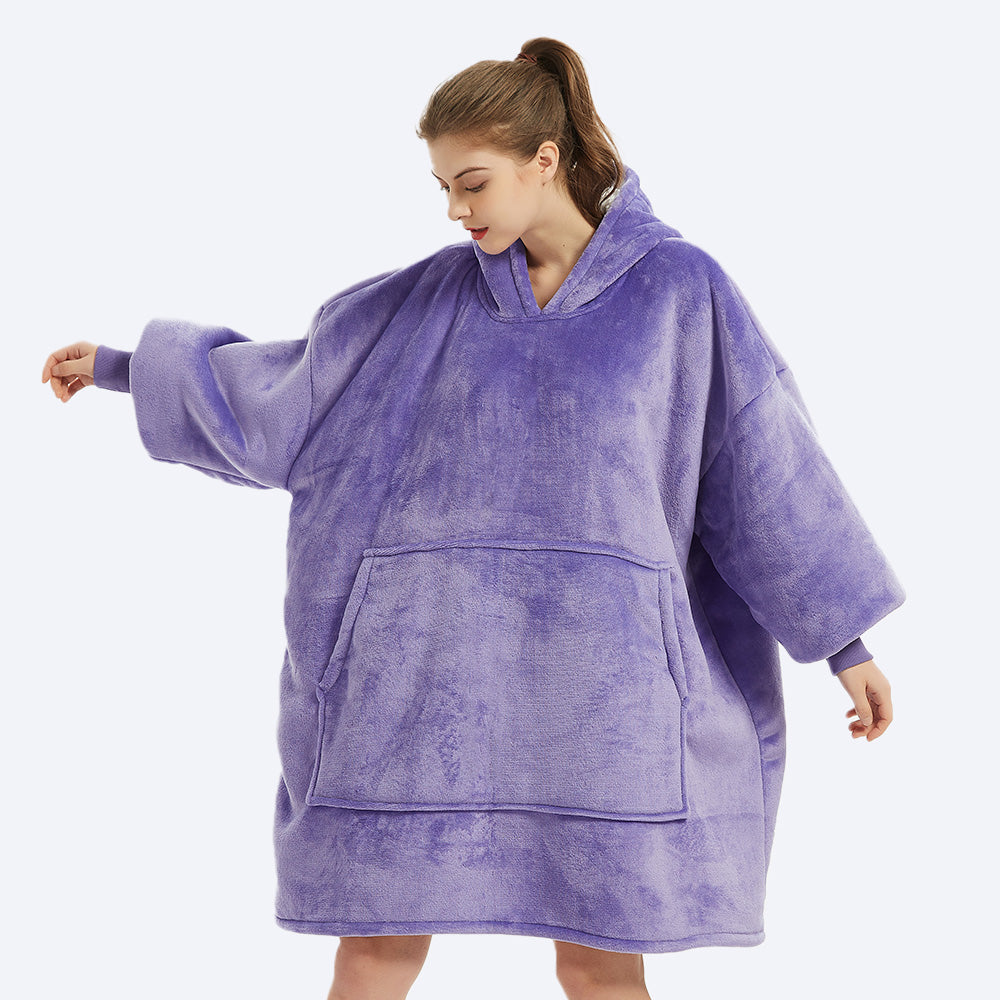 Omge dig med den ultimata komforten i Lavender Luxe Hugly™, en hoodiefilt i en förtrollande lila nyans, påminnande om en lavendelfält. Denna Hugly kombinerar lyxig sammetslen flanell på utsidan och Sherpafleece inuti för en oslagbar mjukhet. Den generösa fickan och den höga kragen erbjuder praktisk bekvämlighet, medan rymliga ärmarna och huvan skapar en känsla av värmande lyx. Lavender Luxe är en kunglig kram, en premiumklassupplevelse i hemmets bekvämlighet.
